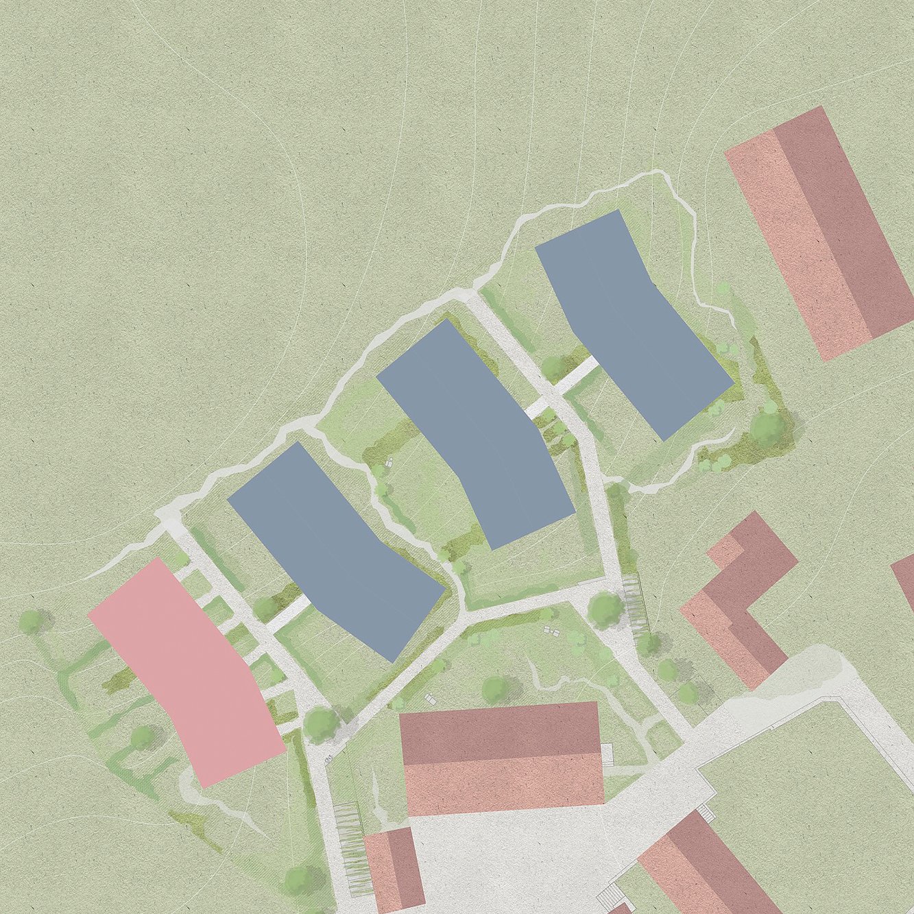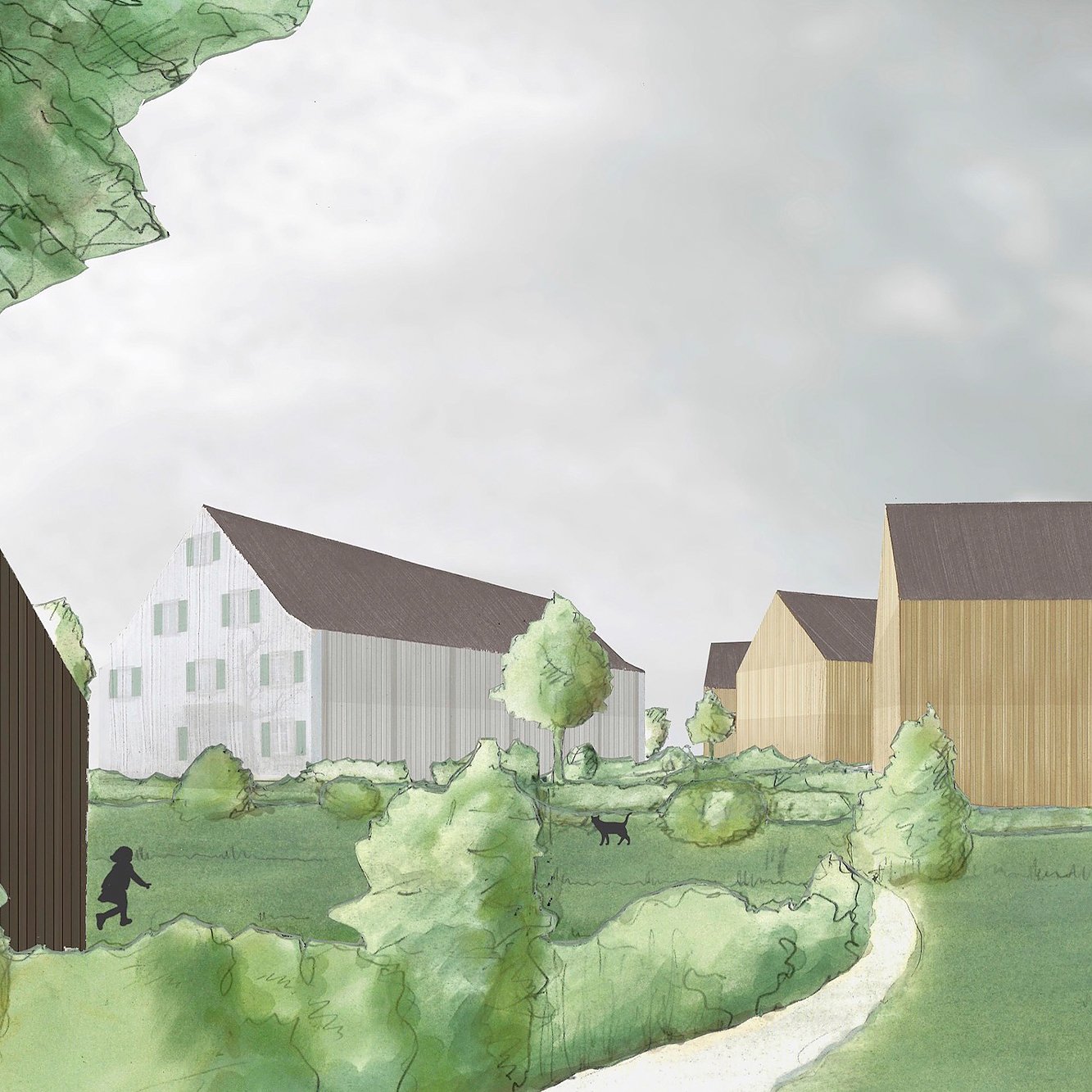 BEM Architekten gewinnen den 2. Preis im eingeladenen Studienauftragsverfahren in Niederhasli. 4 neue, leicht abgekröpfte Baukörper vermitteln zwischen Landschaft und dem historischen Gehöft, welches zusammen mit dem Pfarrhaus und der Kirche ein denkmalgeschütztes Ensemble bilden. Das historische Gehöft wird zu Wohnungen umgenutzt.
