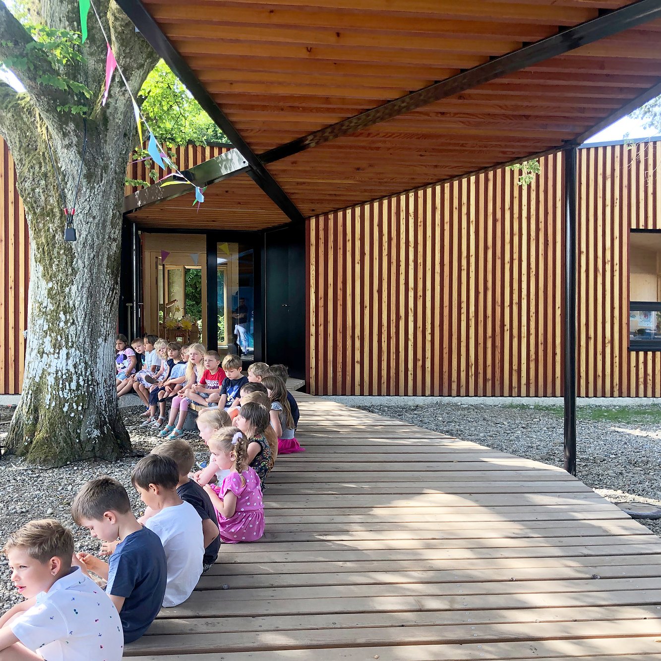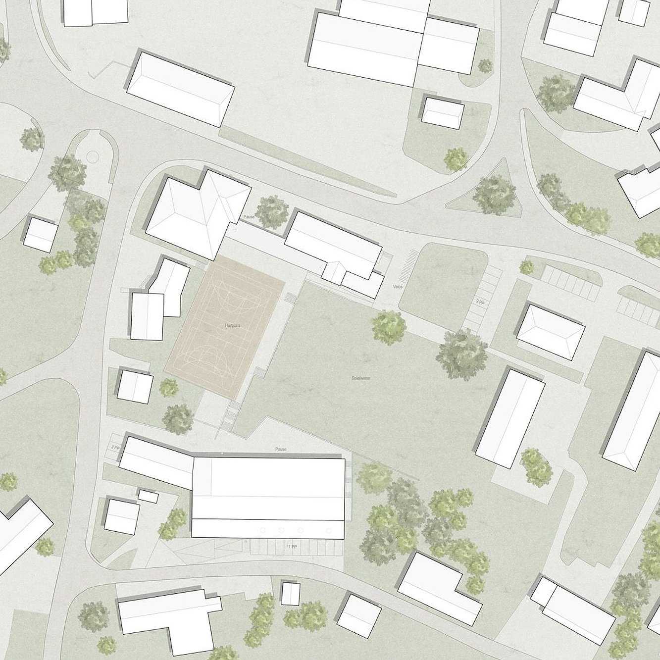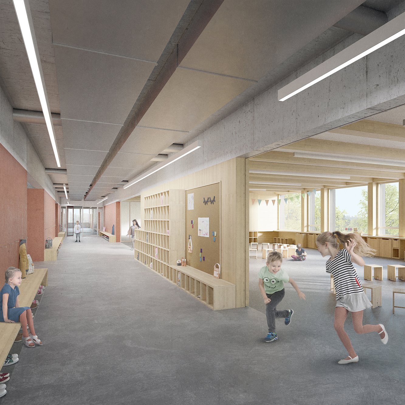 Wir freuen uns, den bestehenden Dorfplatz neben dem Gemeinde- und Zopfhaus durch dem neuen Kindergarten zu komplettieren und alsbald mit Kinderlachen und Leben zu füllen.