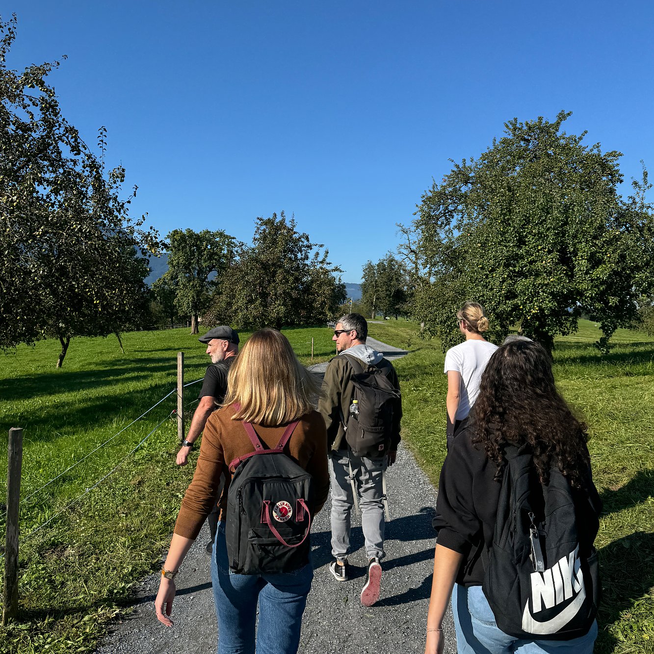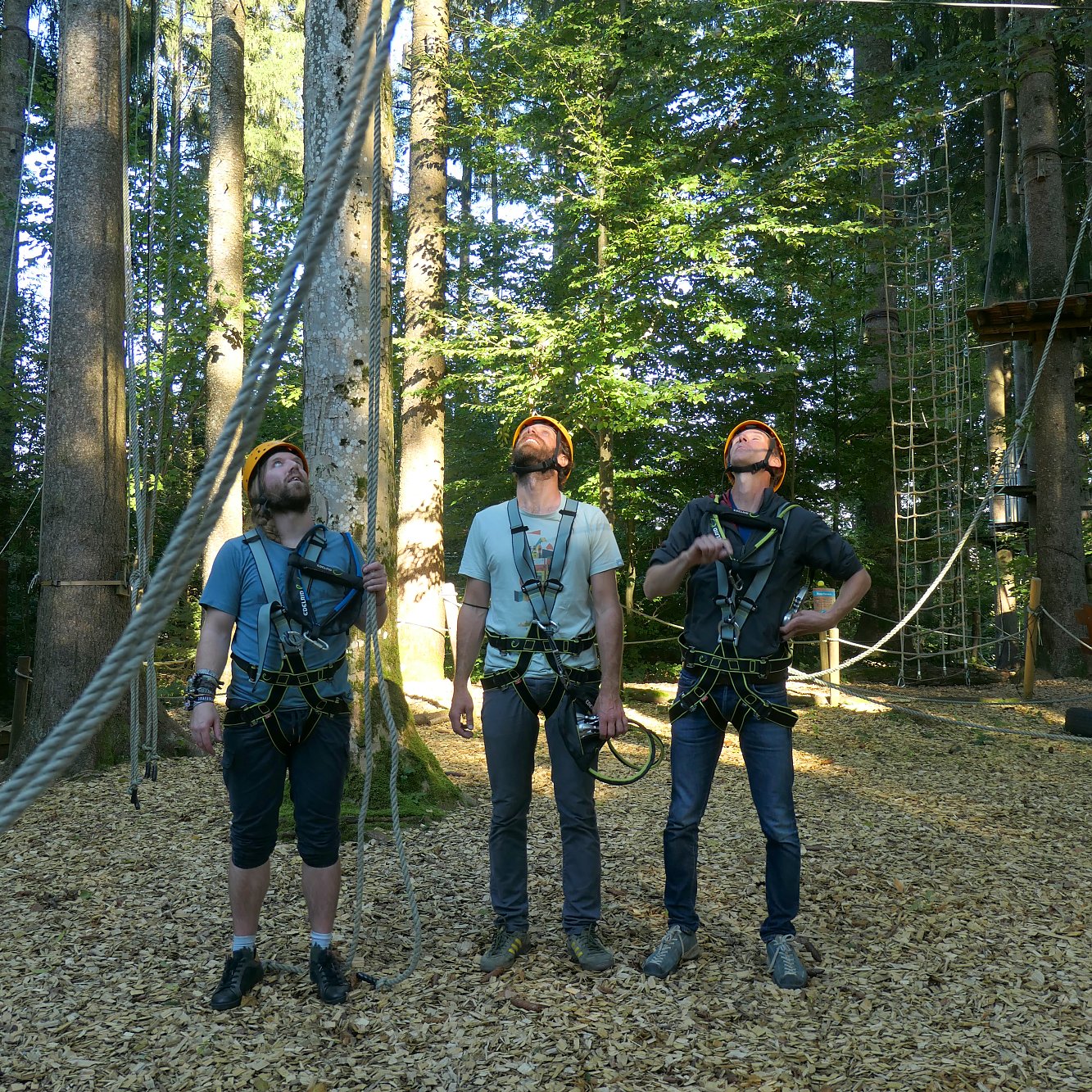 Die Büroreise zeigte dieses Jahr steil nach oben: von der himmlischen Stifsbibliothek und Kathedrale in St. Gallen über den sonnigen Menzlen in die Baumkronen des Seilparks Gründenmoos.