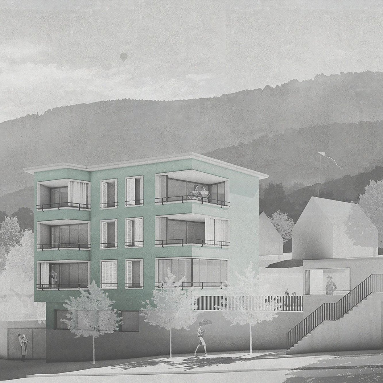 BEM gewinnt mit seinem Wettbewerbsbeitrag für 6 flexible Kleinwohnungen und ein Atelier in Ennetbaden den ersten Preis.