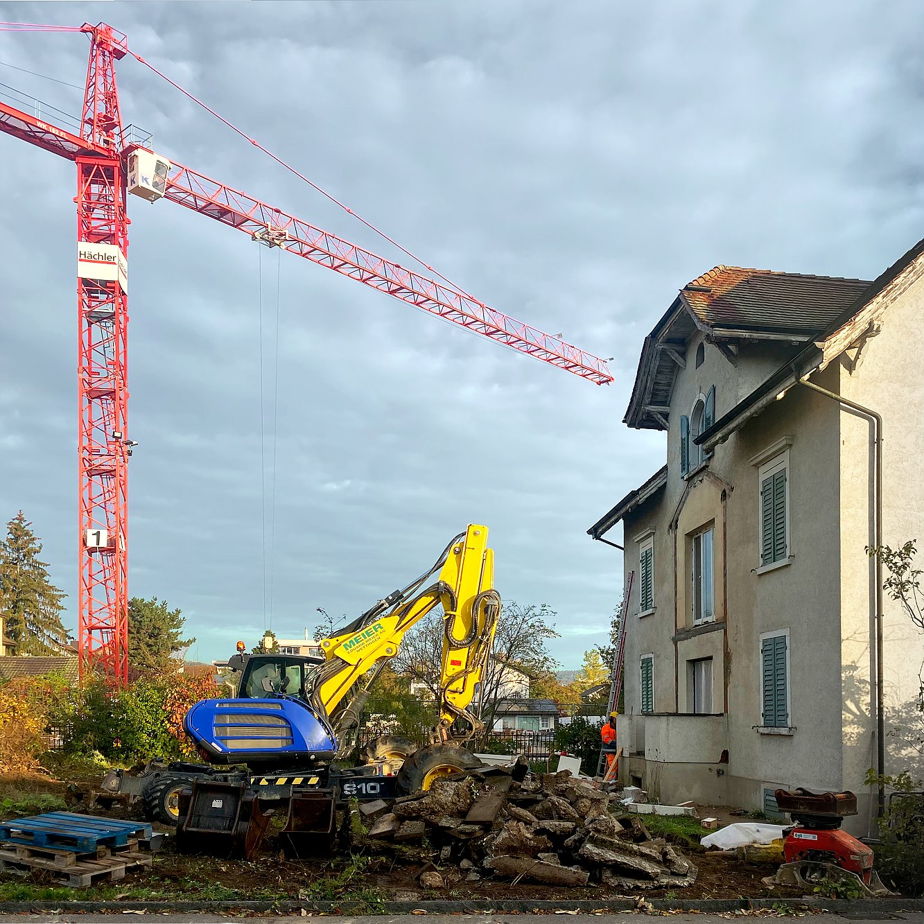 Mit dem Abbruch des baufälligen Einfamilienhauses startet der Bauprozess für unser Projekt in Ennetbaden. Wir verfolgen gespannt jeden Fortschritt bis an dieser Stelle drei sonnenverwöhnte, neue Wohnungen bezogen werden können.