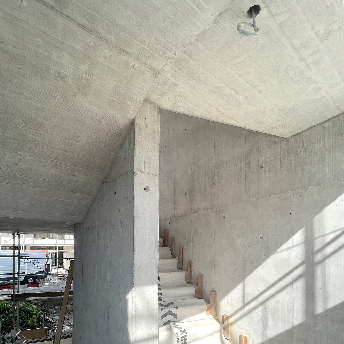 Unser offenes Treppenhaus am Rennweg in Wettingen ist ausgeschalt und zeigt erstmals sein wunderbares Schalungsbild! Wir freuen uns übers Resultat und sind gespannt, wie es mit der Holzfassade harmonieren wird.