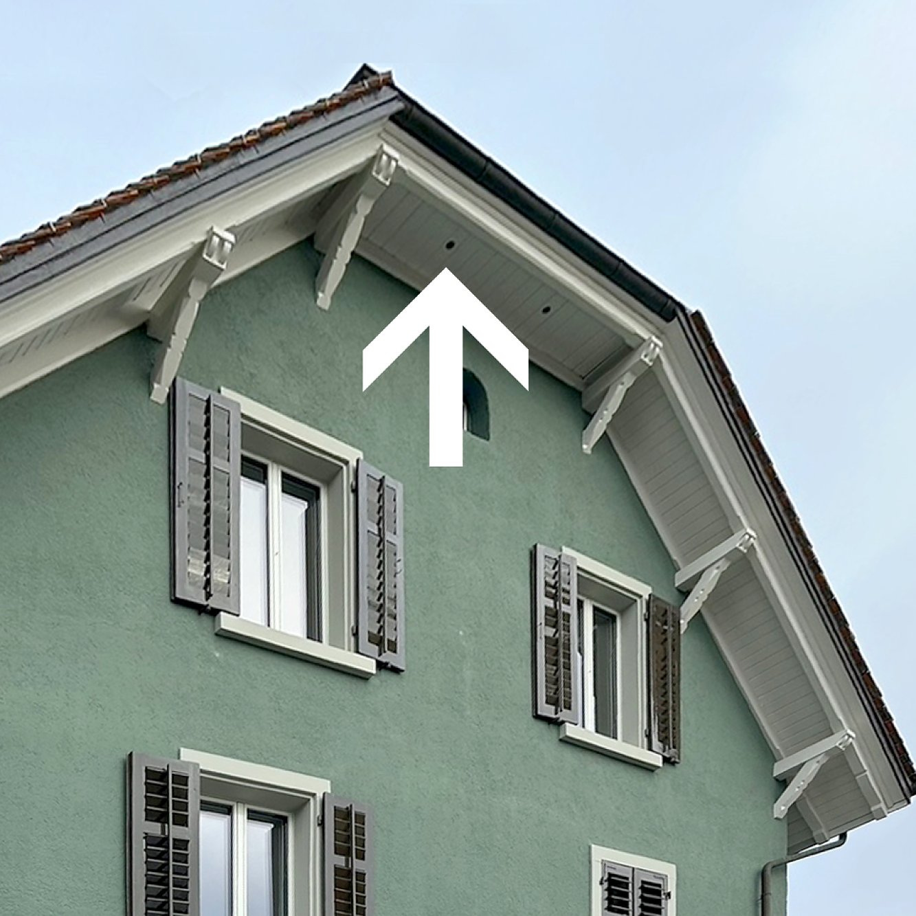 Im Vordach des sanierten Wohnhauses am Rennweg in Wettingen durften wir zwei Nistkästen für Mauersegler installieren. Die zwei unauffälligen Löcher an der Fassade sollen bald zum tierischen Zuhause werden. Bis jetzt ist noch niemand eingezogen, aber wir haben auch noch kein Inserat geschalten...