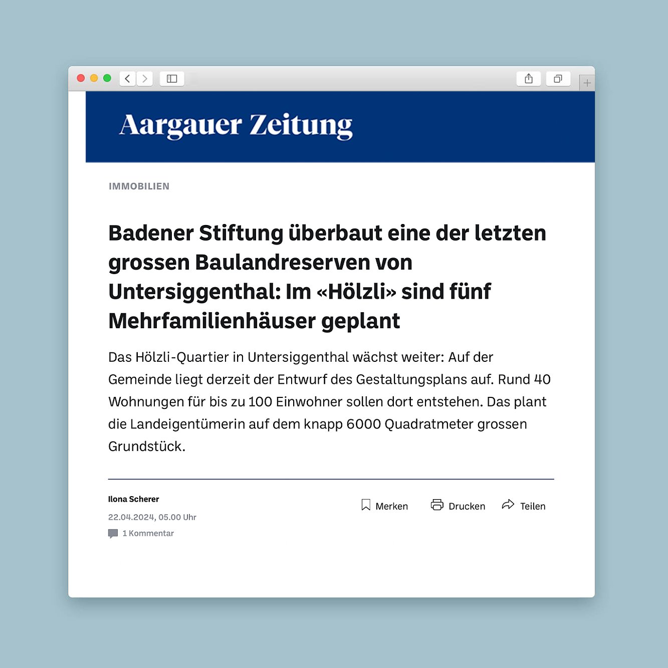 Die Aargauer Zeitung berichtet über unseren Gestaltungsplan in Untersiggenthal. Vielen Dank an Ilona Scherer und die Redaktion der AZ für den gelungenen Artikel.