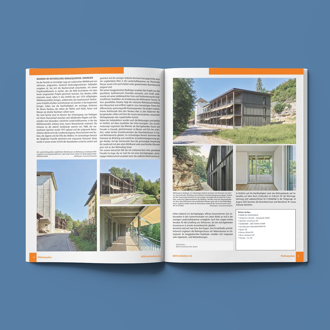 Mit grosser Freude durften wir zwei unserer Projekte in der Publikation Bauen + Wirtschaft wiederfinden. Wir danken der Redaktion für die gelungenen Artikel zur Winzerstrasse in Wettingen und Mühleweg Endingen.