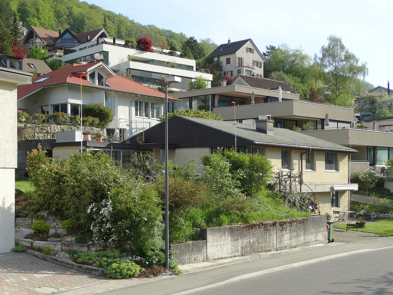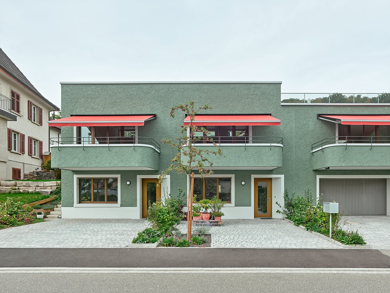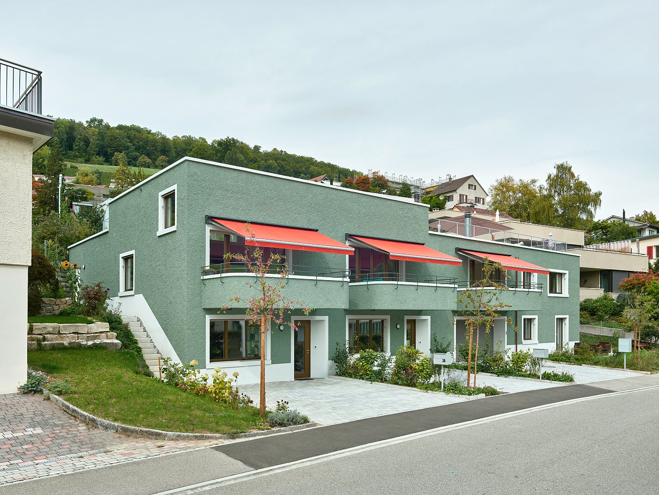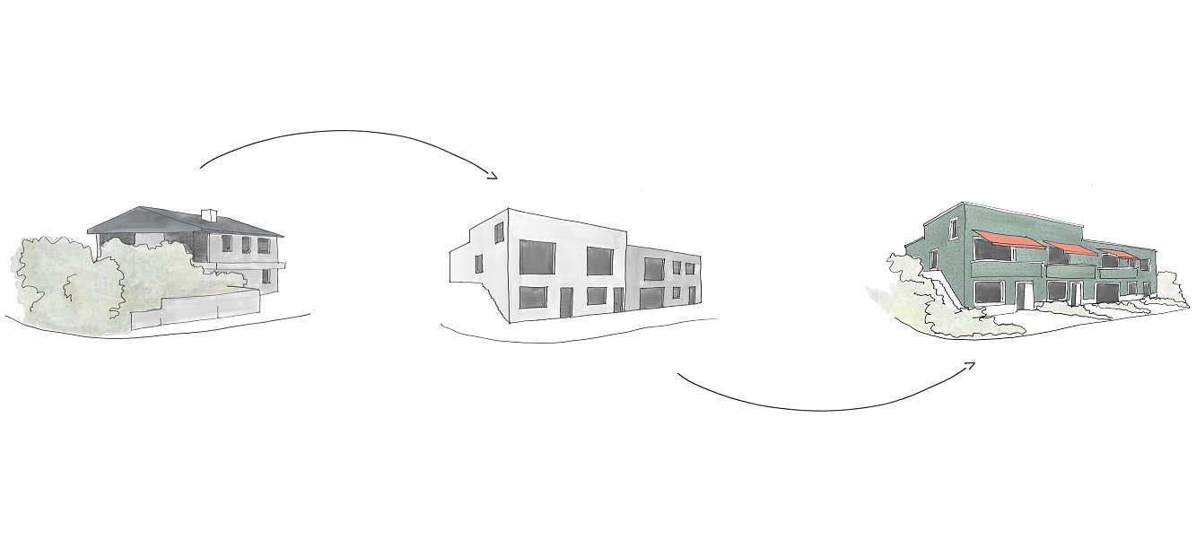 An der Schlierenstrasse in Ennetbaden wurde ein bestehendes Einfamilienhaus aus dem Jahre 1973 mit zwei neuen Wohnungen ergänzt und zum zeitgenössischen Mehrfamilienhaus transformiert. Die neuen Nachbarn reihen sich nahtlos an den Bestand und führen ihn mit der neuen Fassadenschicht weiter.