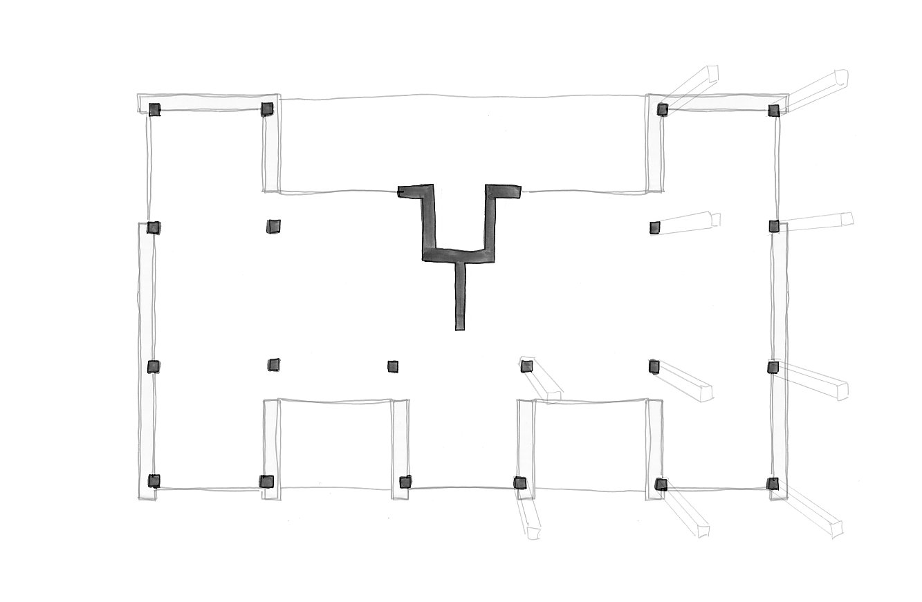 Konstruktiv basiert das Gebäude auf einem Raster aus Betonstützen, welche die Deckenplatten tragen. Diese einfache, robuste Struktur erlaubt hohe Flexibilität in der Grundrissgestaltung. Die nichttragenden Wände bestehen aus geschlemmtem Kalksandsteinmauerwerk. Die Oberflächen treffen damit in einer materialgerechten Sprache aufeinander und schaffen vom rohen Beton bis zum hochwertigen Holz einen bewussten Kontrast.