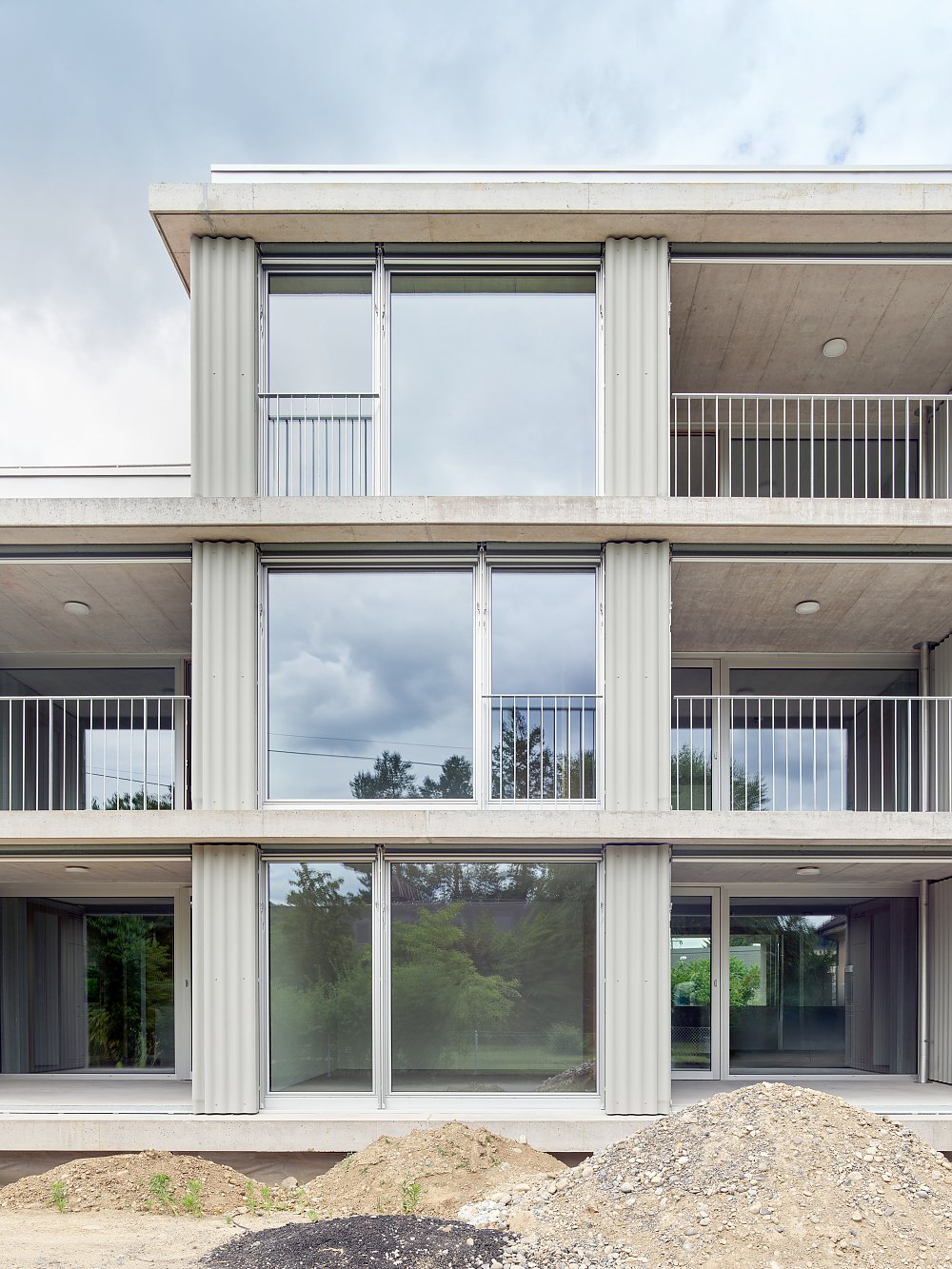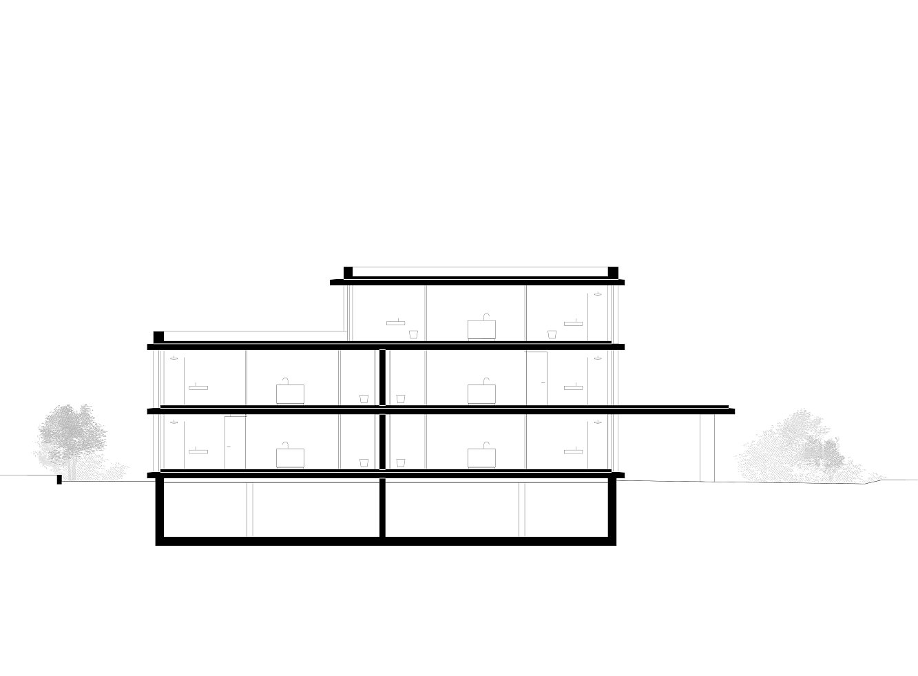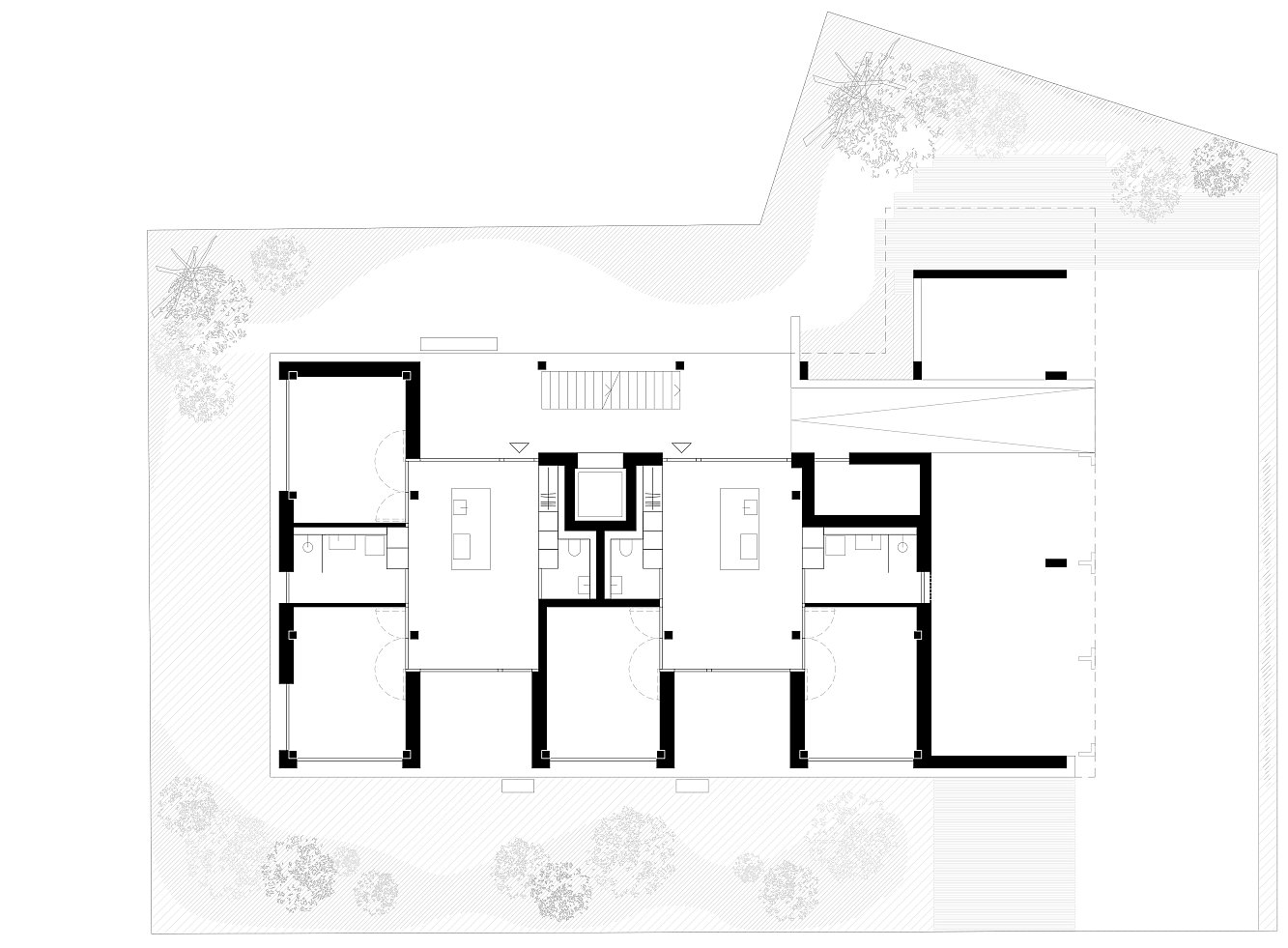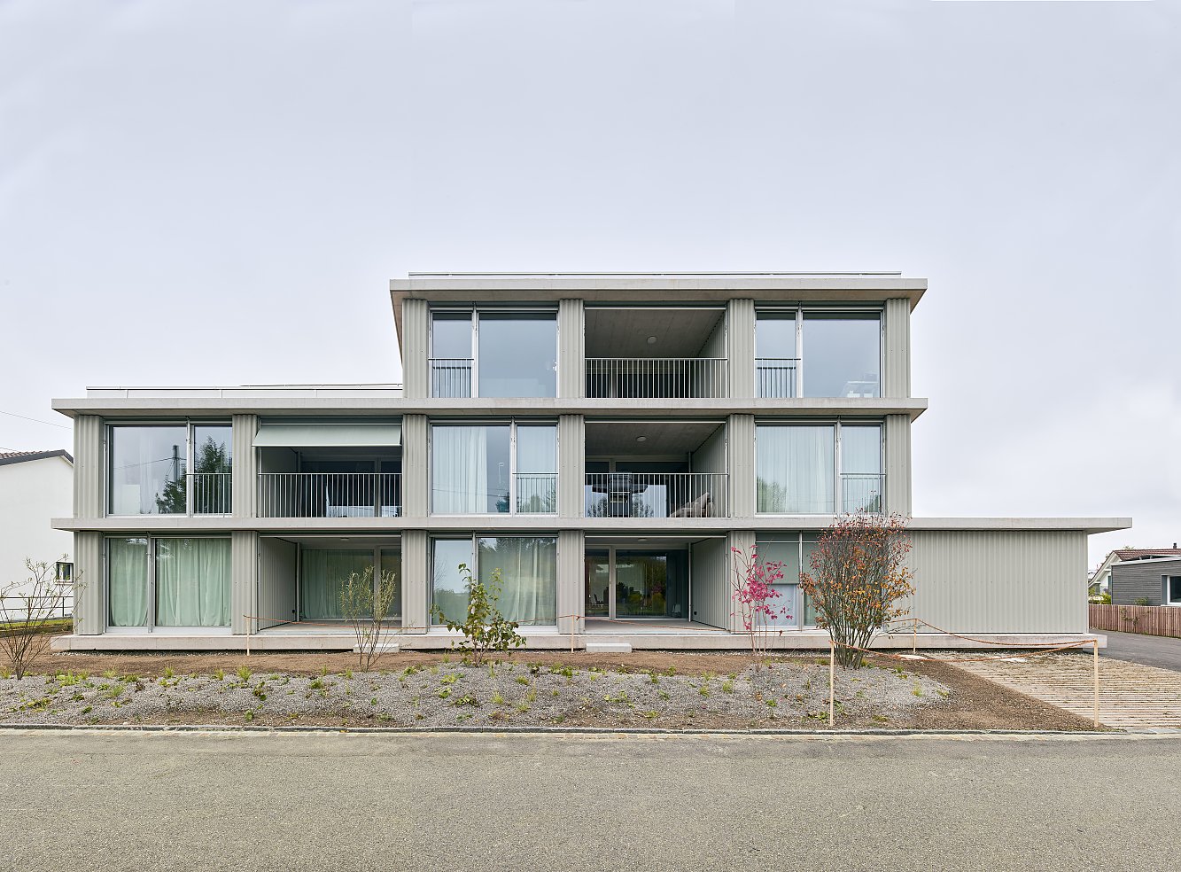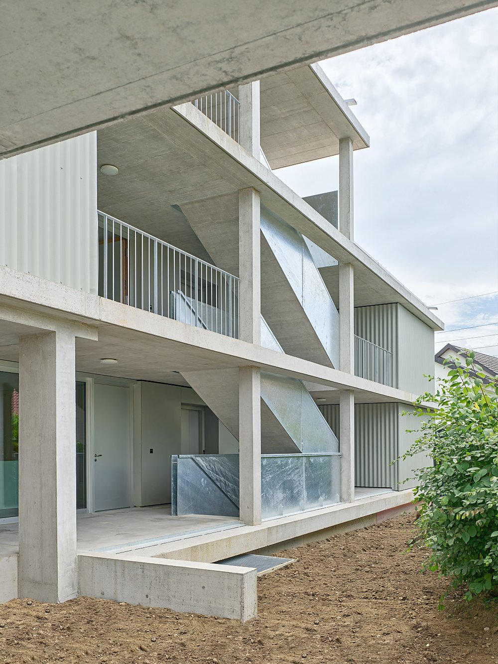 Am Dahlienweg in Windisch ist ein Mehrfamilienhaus entstanden, das neue Wohnformen im gewachsenen Einfamilienhausquartier etabliert. Die Erschliessung erfolgt über eine offene Laube, die dem Haus eine kommunikative Geste zum Quartier hin verleiht. Diese schafft nicht nur informelle Begegnungsräume, sondern auch einen zweiten Aussenbereich des durchgestreckten Wohnraums.